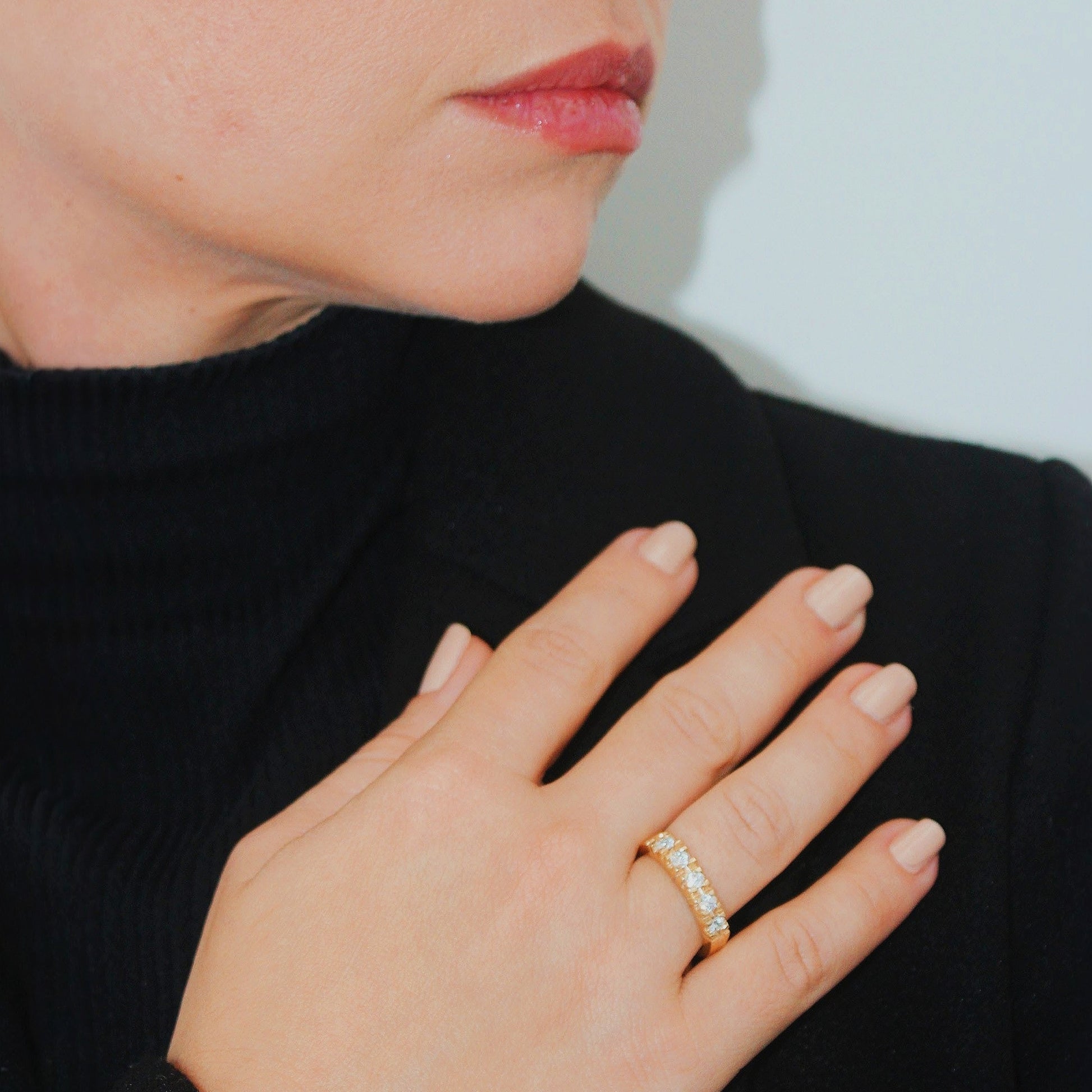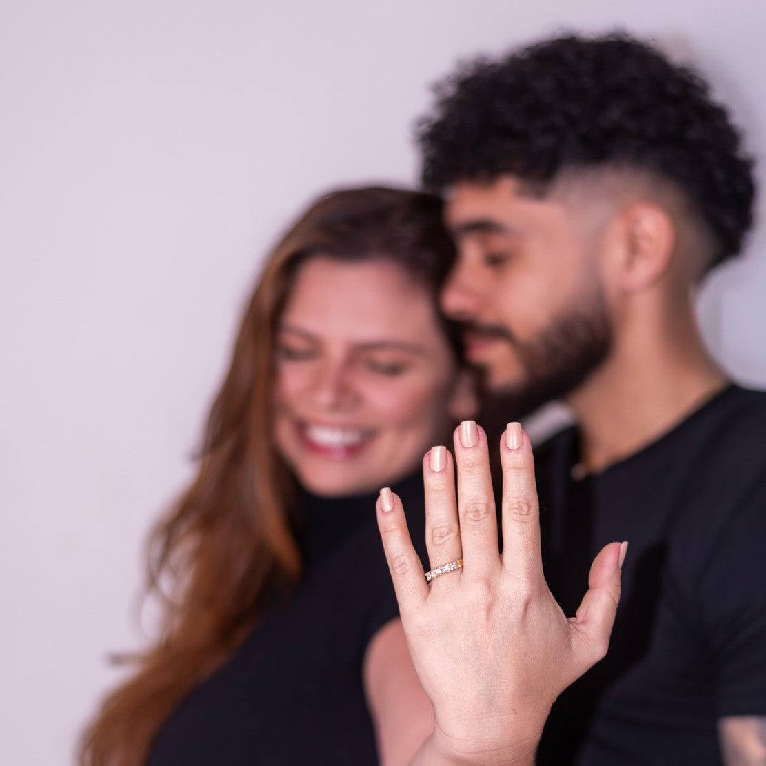 Com seu brilho marcante e acabamento refinado, ela complementa qualquer composição — seja ao lado do anel de noivado ou usada sozinha como peça de destaque.